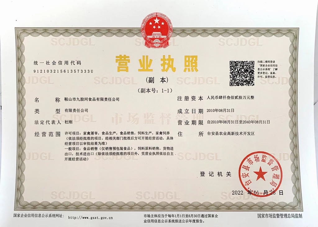 1997年丨九股河誕生于遼寧臺安,成立臺安縣九股河農業(yè)發(fā)展有限公司2003年丨九股河走進錦州市,在凌海成立凌海九股河食品有限公司2008年丨成立凌海九股河飼料有限公司2010年丨九股河與禾豐合作后,成立鞍山市九股河食品有限責任公司,從此,禾豐九股河走進了高速發(fā)展之路2011年丨繼續(xù)在遼西闊步,成立葫蘆島九股河食品有限公司同年,臺安縣九股河農業(yè)發(fā)展有限公司養(yǎng)殖部成立,按下規(guī)模化籠養(yǎng)小區建設的快進鍵2